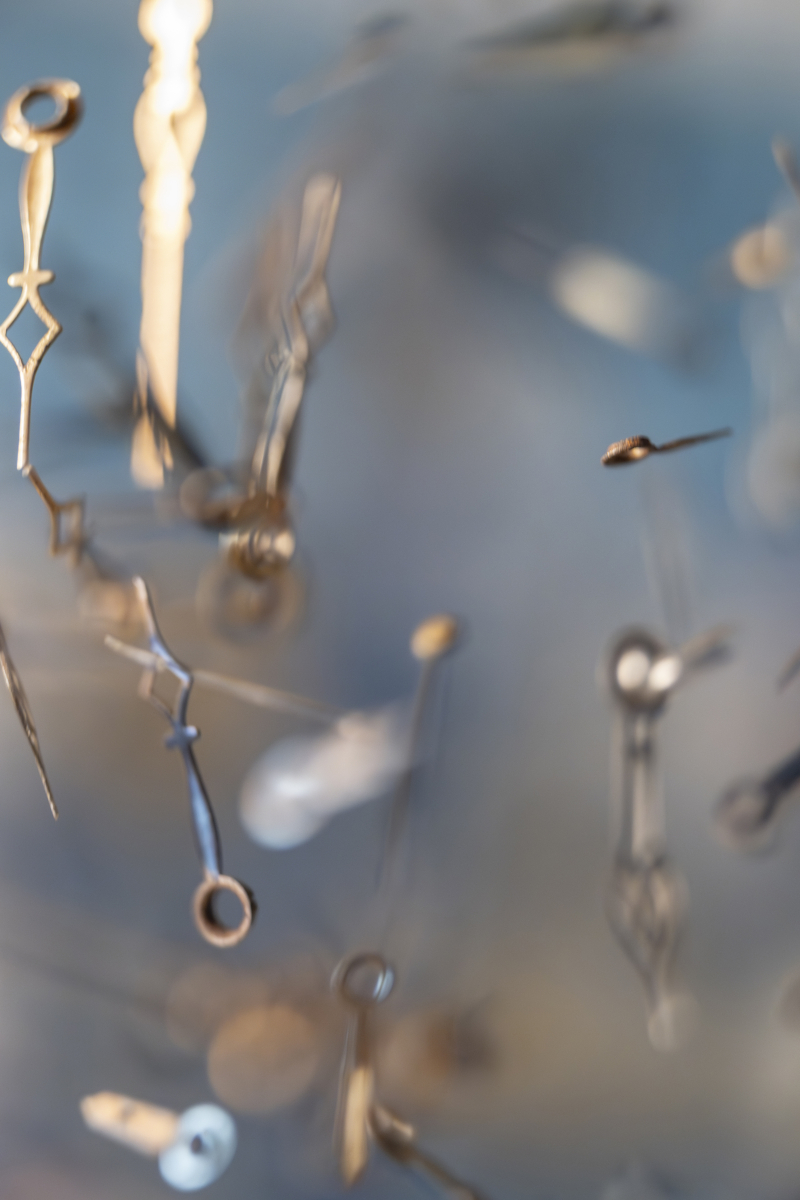 Kai-Uwe Schulte-Bunert tenta invece nel suo lavoro di dare una forma, seppur astratta, al tempo. Smontandone metaforicamente e fisicamente i meccanismi, ce lo presenta come una fluttuazione continua in uno spazio indefinito che l’obiettivo della camera è in grado di fermare solo in modo frammentario e randomico. Quasi a suggerire i modi in cui affiora il ricordo, quando mette a fuoco un dettaglio che ci aiuta a riportare nel presente le pallide visioni che ci vengono dal passato.